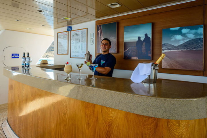 Life on the Seaman Journey is a feast for the mind as well as the senses. That feast starts with informative talks on the Galapagos’ geology, marine life, biology, and history, delivered by a certified naturalist guide. It extends to rich Ecuadorian and international cuisine, with meat, poultry, and seafood dishes prepared by an award-winning chef.